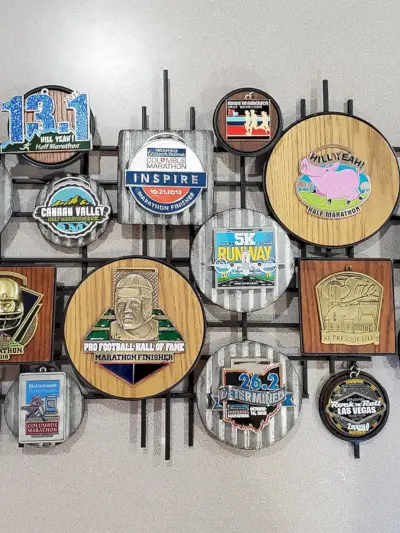 Y no importa qué tipo de corredor sea usted (o su estilo de decoración), probablemente haya una exhibición que combine. Las opciones incluyen modelos de metal con dichos inspiradores (o divertidos), como este de Allied Medal hangings que proclama Zombie Apocalypse Training. O si prefieres algo un poco más rústico, la tienda Woodinout en Etsy ofrece una talla de madera con una representación escénica de un sendero. También puedes obtener diseños personalizados incorporando tu nombre , lugares de carrera o distancia , o marcas personales .